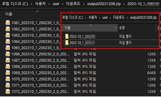 - 4개 선택 행 중 2개는 파일이 없는 Tab이므로 파일이 있는 데이터의 폴더 2개만 생성됐습니다.