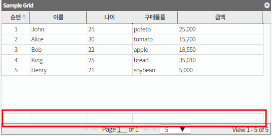 - 추가 후 그리드를 보면 아래와 같이 아래쪽에 라인이 하나 잡히는 것을 확인할 수 있습니다.
